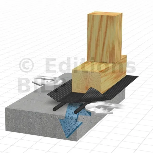 Elle garantit une étanchéité à l’air efficace entre la dalle en béton et la lisse basse des constructions à ossature bois.