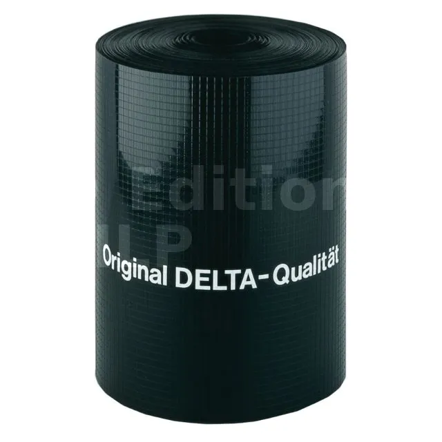 DELTA®-DPC est utilisé pour les murs doubles à la base de la construction et les raccords de fenêtres. Les recouvrements sont collés avec DELTA®-THAN. Il est compatible avec les membranes d’étanchéité bitumineuses, mais il ne doit pas être soudé directement.