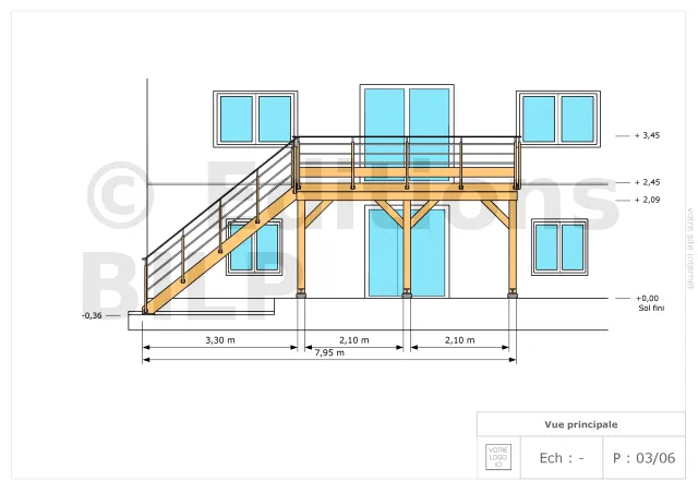- Le calcul de la structure de votre terrasse (dimensionnement des éléments en bois). Il s’agit de la prestation : la vérification des plans