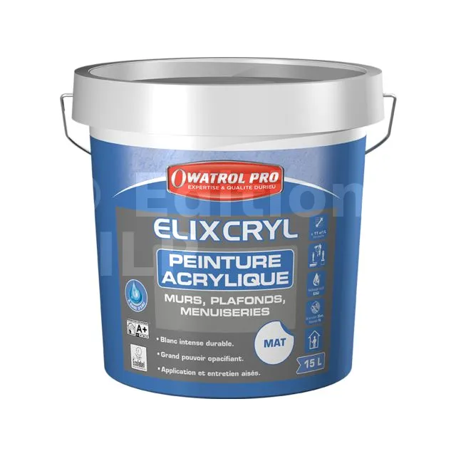 - ELIXCRYL s’applique en 2 couches à la brosse, au rouleau (type manchon pour acrylique) ou au pistolet professionnel.