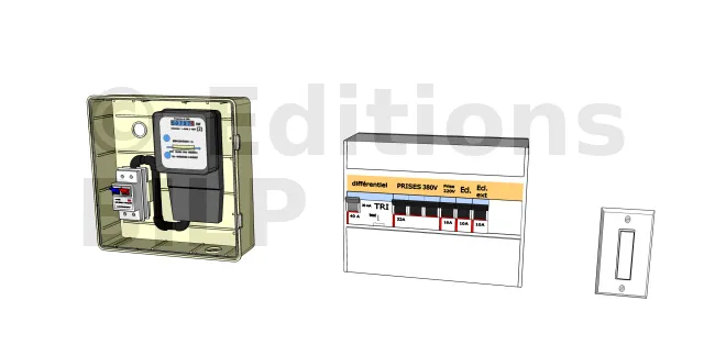 - 1 : Disjoncteur : c’est un appareil destiné à couper automatiquement le courant électrique lors d’une surtension ou d’un court-circuit.