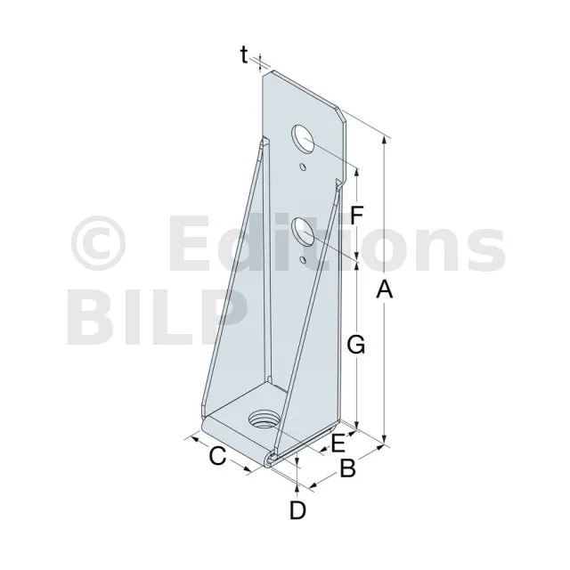 Ancrage pour montant d’ossature 64x220x57mm épaisseur 2.5mm - Réf. HD3B