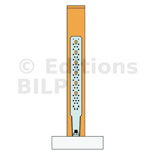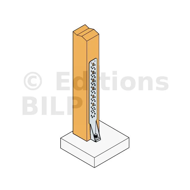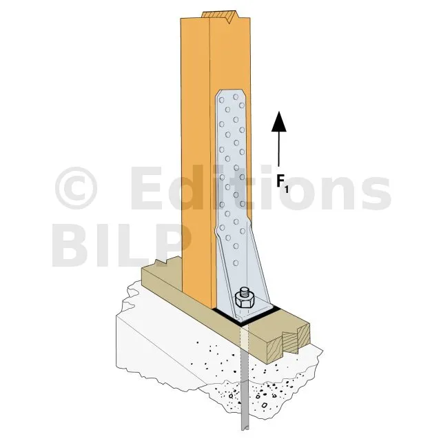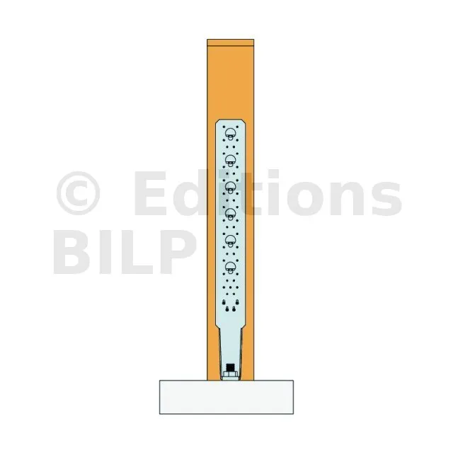 Cet ancrage reprend des efforts de traction dans différentes configurations. Les perçages de pointes permettent d‘adapter la fixation en fonction des configurations : utilisation en travaux neufs, réhabilitation pour le renforcement des structures existantes.