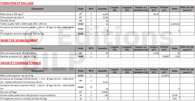 Les valeurs de ce tableau ont été vérifiées par test avec la présence d’un organisme certifié. Pour toute demande complémentaire, merci de contacter le service technique.