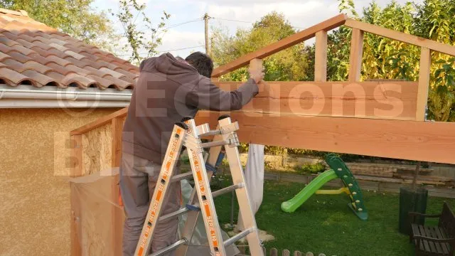 - Ailes pliées pour ajuster la hauteur du sabot par rapport à l’élément porteur. Clouer les ailes rabattues.
