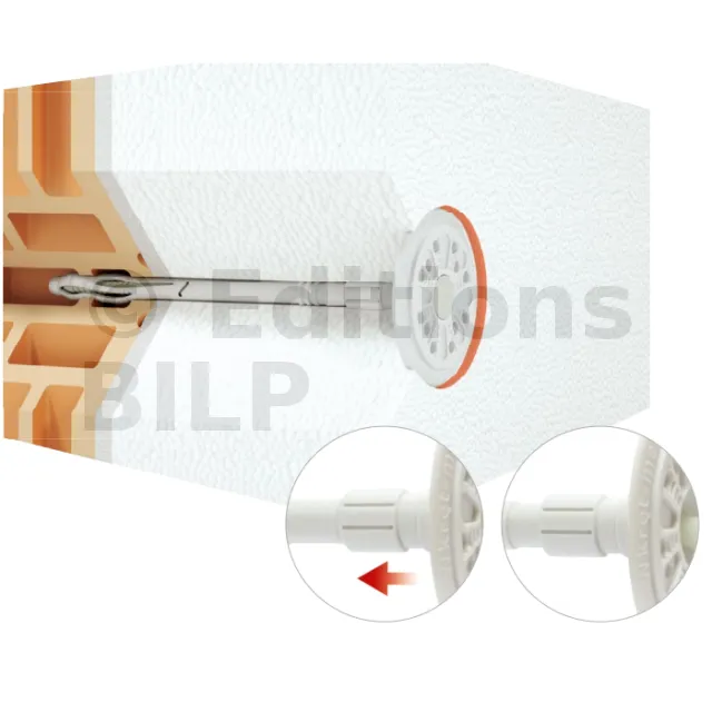 Cheville d’isolation à frapper avec clou en plastique, avec plaque de fixation coulissante