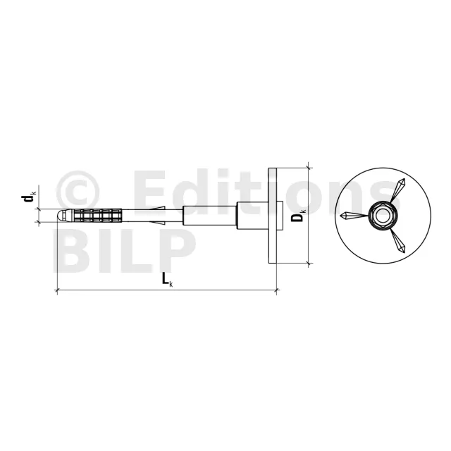 - Cheville avec collerette de coupe.