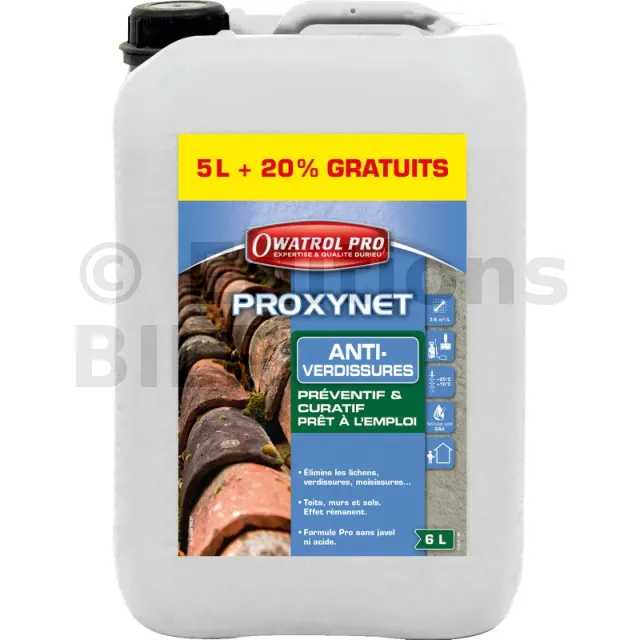 PROXYNET : Anti-verdissures PRET A L’EMPLOI. Préventif / Curatif. Effet remanent - Toits / façades / murs / sols... - Réf. OXPROMOUS6