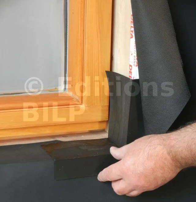 Angle souple pour la réalisation de l’étanchéité au niveau des cadres d’ouverture de constructions à ossature bois. Avec surface striée pour faciliter la découpe. Matériau résistant aux UV.