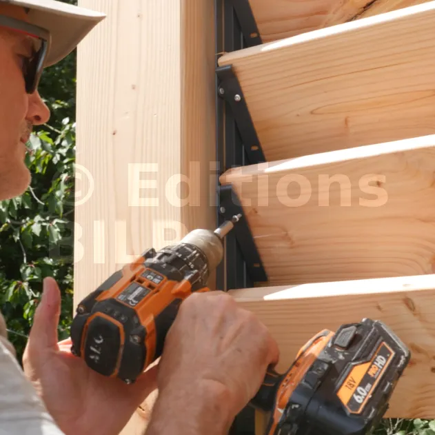 - Une vis de part et d’autre de chaque lame en BOIS.