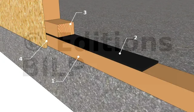 - 4 : Voile de contreventement descendant au moins à 15 mm en-dessous du joint mousse