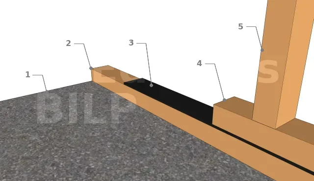 - 3 : Tasseau de revêtement intérieur