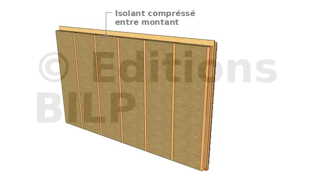 - Placer l’isolant entre les montants. Celui-ci sera comprimé dans le sens de la largeur ;