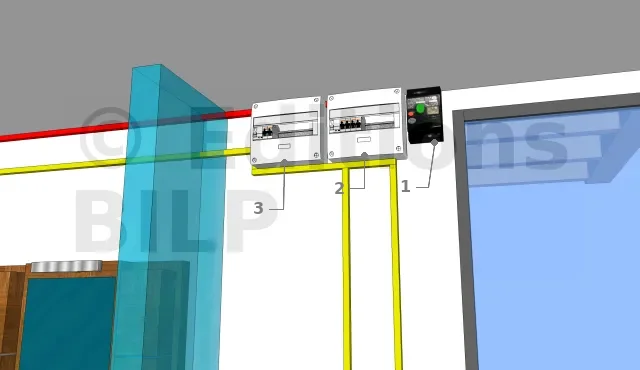 - L’interrupteur de commande et les interrupteurs différentiels : La pièce dispose de 2 interrupteurs différentiels destinés pour chaque circuit et un interrupteur de commande pour le point d’éclairage.