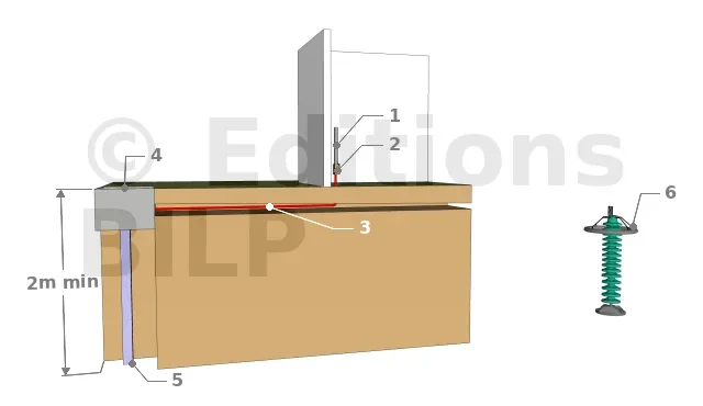 - 3 : Liaison prise de terre à borne avec conduit isolant