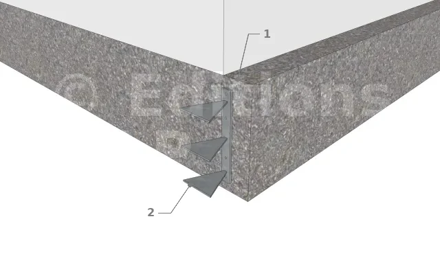 L’echelle de bande de fixation se fixe avec des vis a béton ou cheville a béton contre le béton existant. Les bandes resteront piégées dans la nouvelle dalle après coulage et prise du béton.