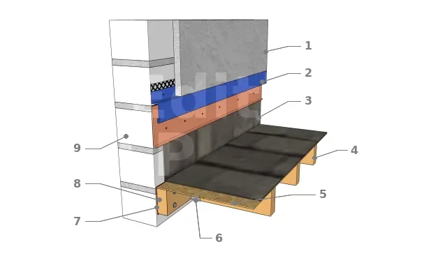 - 2 : Bande de solin ;