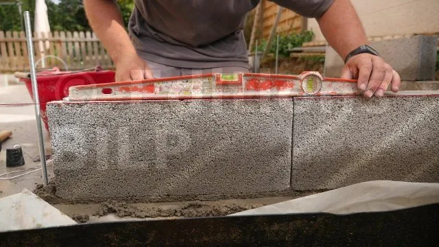 - Placez le niveau à bulle sur la règle pour voir si les deux parpaings sont à la même hauteur.