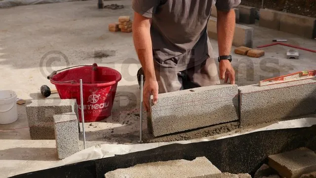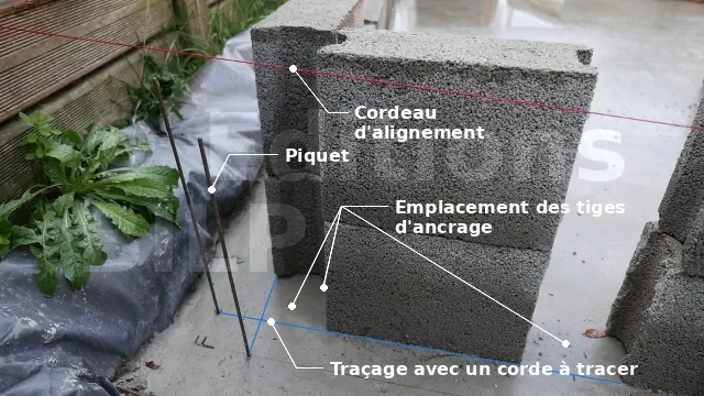 - Faites un appareillage à sec pour localiser l’emplacement des ancrages des tiges filetées et attentes des chaînages d’angles.
