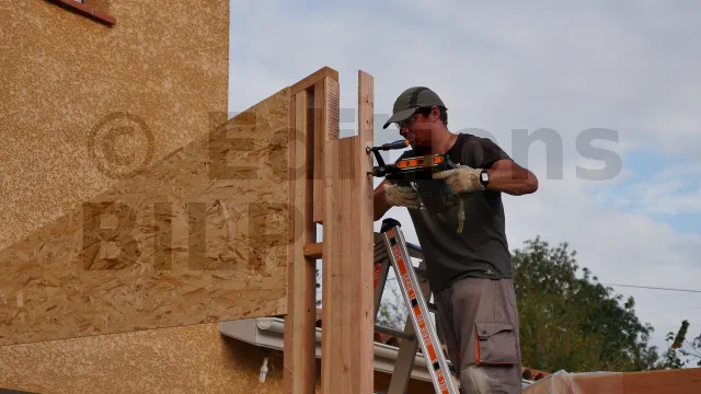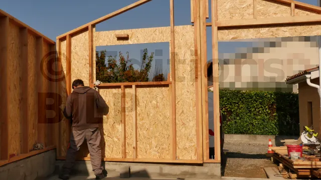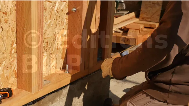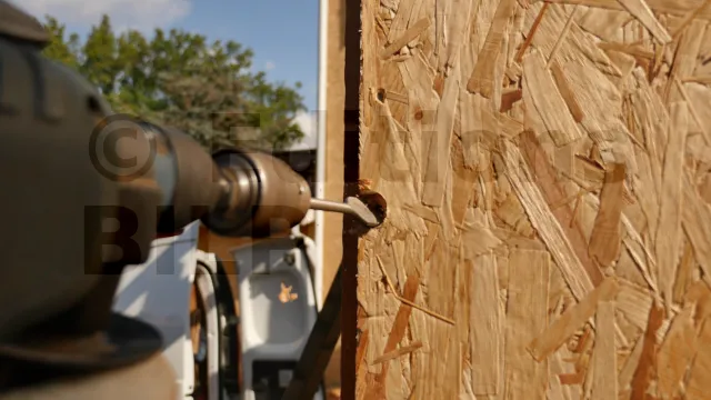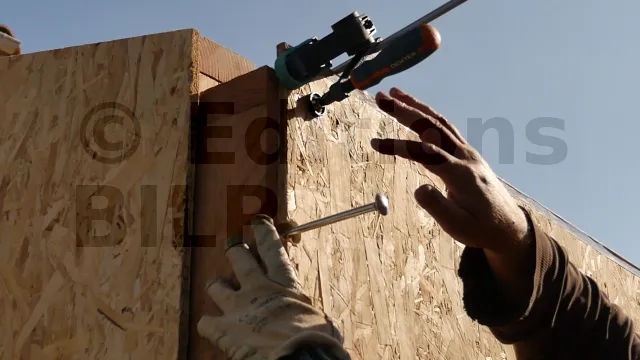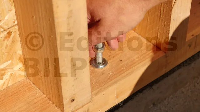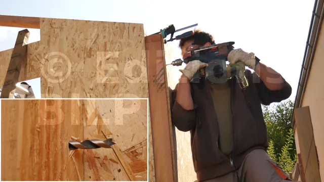 Pour ne pas gêner la pose des écrans pare-pluie, veillez à ce que les têtes des boulons ne dépassent pas les panneaux de contreventement (OSB). Pour cela, réalisez des trous borgnes.