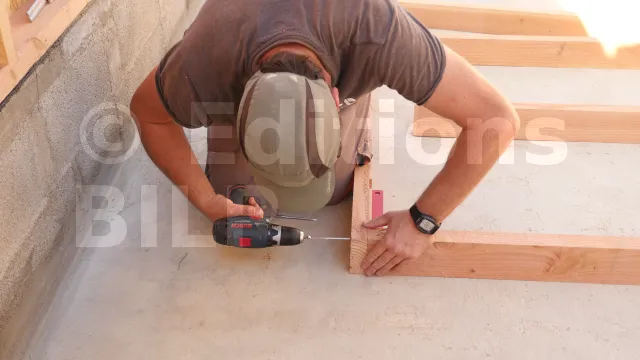 Maintenez les deux montants adjacents des deux demi-murs à l’aide de serre-joints avant de percer les trous.