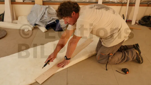 La mise en place des isolants en laine de verre