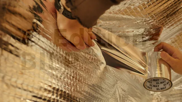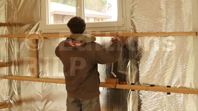 Si la largeur du rouleau de pare-vapeur réfléchissant est inférieure à la hauteur des murs plus une dizaine de centimètres pour le recouvrement sur la jonction des murs et du plafond, il faut le poser verticalement. Si la largeur est suffisante, la pose peut être effectuée horizontalement.
