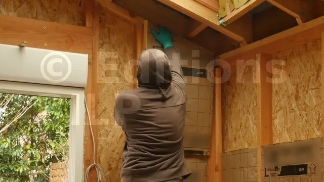 Les petites coupes ne peuvent pas être maintenues avec des baguettes à certains endroits, donc leur mise en place doit être effectuée lors de la pose des lambris.