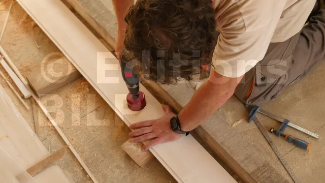 Les lambris sont équipés de languettes et de rainures sur leur longueur et leur largeur. La languette de largeur de la coupe s’emboîte dans la rainure de largeur de la lame de la même rangée, tandis que celle de longueur s’insère dans la rainure de la lame de la rangée précédente.