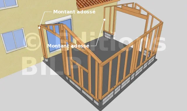 La méthode pour la réalisation des trous d’ancrage est identique, qu’il s’agisse de la façade EST ou de la façade OUEST. Les trous doivent être réalisés sur les montants adossés et sur le mur du bâtiment avant l’assemblage des panneaux de mur, afin d’éviter de devoir les démonter et les remonter une fois les trous réalisés.