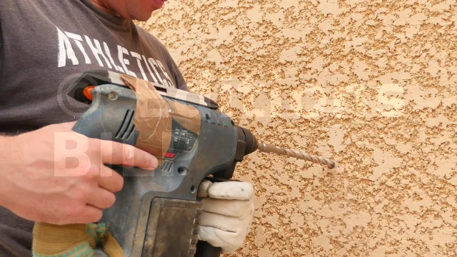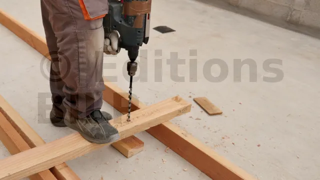 Pour percer les trous, utilisez une perceuse équipée d’une mèche béton. La profondeur doit être douze fois supérieure au diamètre des tiges filetées. Si vous n’êtes pas certain de la profondeur, vous pouvez la repérer en plaçant du ruban adhésif sur la mèche.
