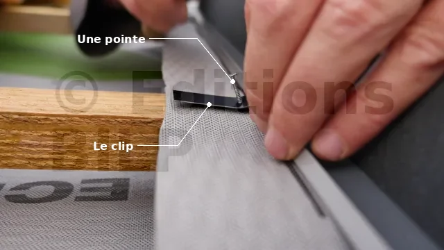 La fixation se fait avec des clips qui sont fixés aux liteaux à l’aide de clous.