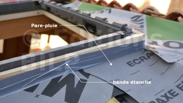 Pour éviter les infiltrations au niveau de la fenêtre, les écrans pare-pluie sur cette zone doivent être repliés vers l’extérieur et fixés sur le bâti de la fenêtre une fois cette dernière en place.